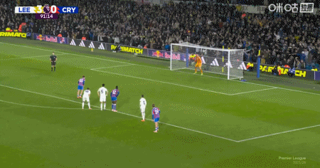 第90+2分鐘,烏切造點,德文尼主罰點球命中,水晶宮1-3利茲聯